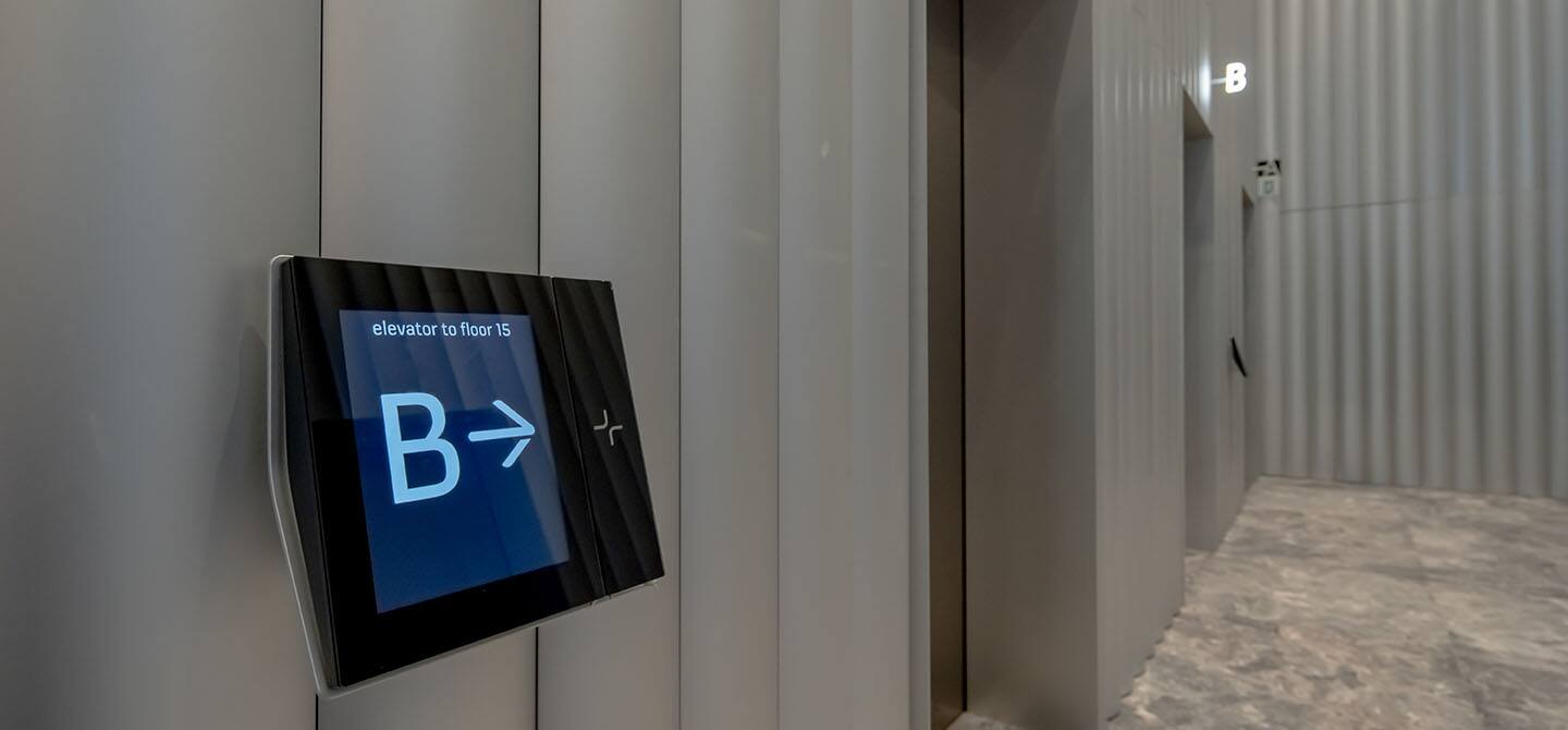 KONE Destination control system takes into account desired destination floors and the number of waiting passengers to significantly improve efficiency and convenience