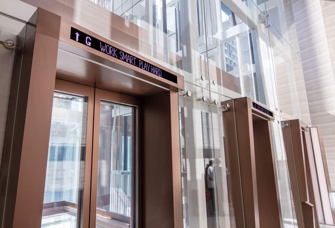 Lee Gardens is a premium destination offering first-class business and retail facilities. As a magnet for exciting fashion, lifestyle products, hospitality and dining, as well as Grade A offices, its flagship building Lee Garden One represents the heartbeat of Hong Kong and is designed with great panache. So when this glamorous building underwent a renovation, it was time to get stylish elevators that matched the elegant décor. KONE experts were called in to work with the customer in equipping the lobby with high quality elevators. “Almost all the metallic parts – the light, the fly wheel, the car top, and all the moving parts – had to be covered by cladding made of bronze-colored stainless steel, and our hoisting machine was also painted white to suit the surrounding design,” says Simon Cheung, KONE’s senior project manager, involved in the Lee Garden One project. “The big challenge was time. The building’s owner, Hysan Development, wanted to complete the renovation in a timely fashion to minimize the impact on the offices and retailers.” At Lee Garden One, Hysan’s design team wished for a tailor-made solution with both the interior and exterior of the elevator seamlessly matching the rest of the mall and office interiors. KONE coordinated with architects Wong & Ouyang, interior designer MMoser and contractors Hsin Cheong Interiors to make this happen. “The new elevators inside Lee Garden One are truly spectacular, one-of-a-kind elevators,” Cheung says. “To ensure the lifts would truly be a unique experience, we coordinated closely with the project’s interior designer for the decoration inside the elevator shaft as well as inside the car because some elements of the car were custom made for these special scenic elevators.”