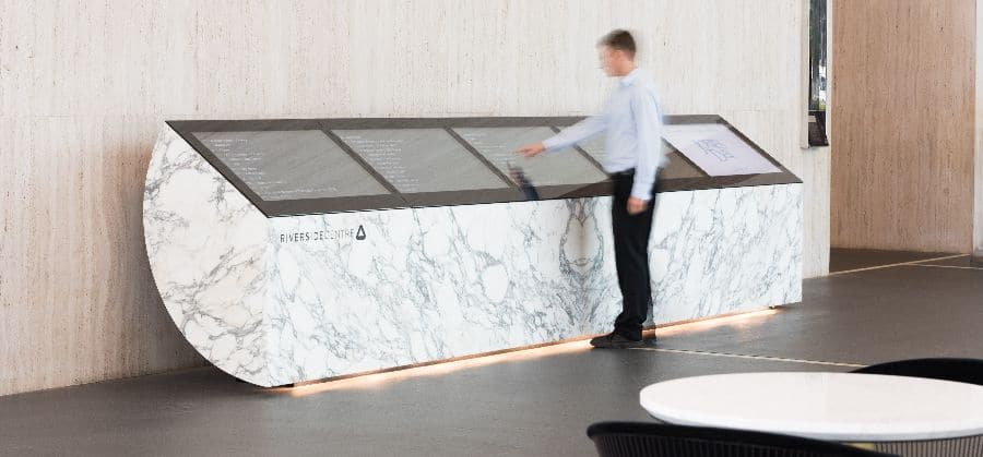 “The visitor selects the tenant she wants on the interactive directory and the system tells her which lift to use,” says Valentine, adding that KONE worked together with the customer to come up with new, custom solutions.