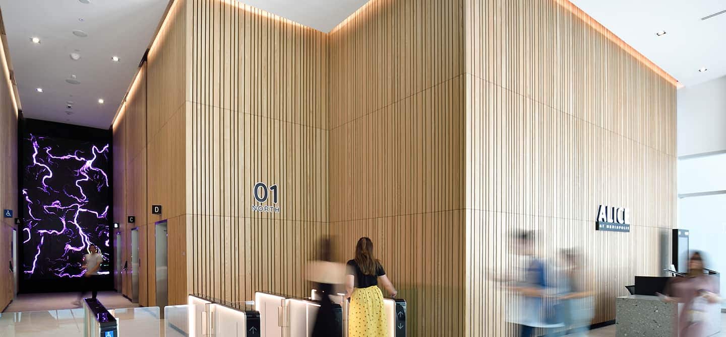 Driven by a need for seamless people flow, Boustead were keen for ALICE@Mediapolis to be a building where tenants could operate the outer doors, turnstiles and elevators without a traditional card reader. While a card system is in place as a back-up, everything is to be done with smartphones – something that KONE already implements in residential buildings with KONE Residential Flow.