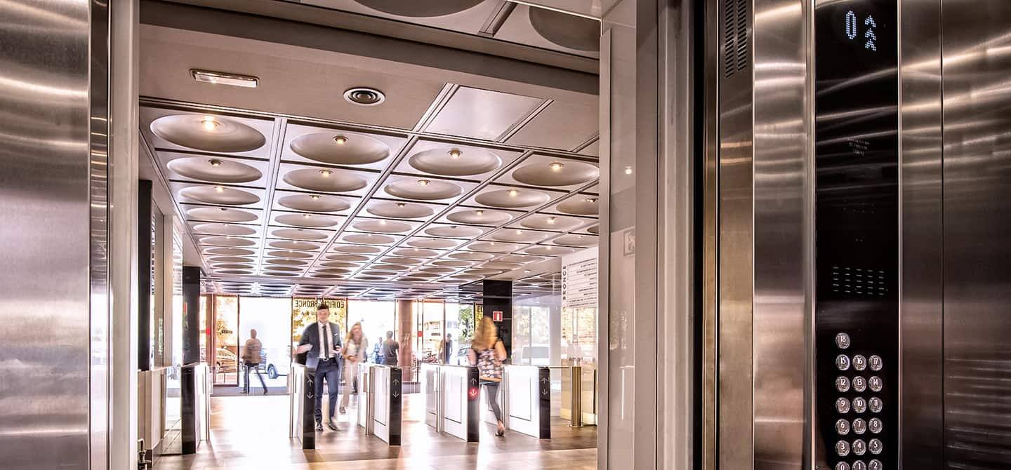 But after three decades in heavy use, the bronze beauty’s years were beginning to show. Handling a daily flow of more than 1,000 people, the six elevators to the offices and the two elevators to the basement car park were simply not moving people fast enough. When KONE was tasked with their modernization, the average waiting time for an elevator during rush hour was an unacceptable six minutes.