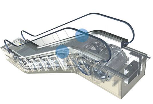 *納米抗菌塗層噴灑器會安裝在自動梯的桁架(藍圈所示)內,減少乘客絆倒的風險。
