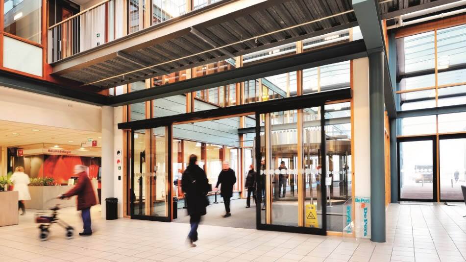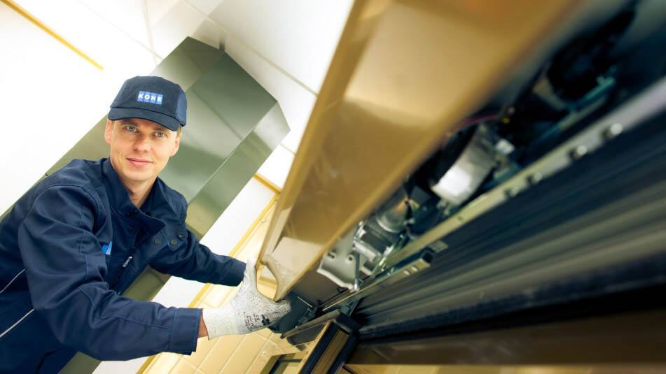 We offer full replacement solutions for your pedestrian doors, industrial doors, and gates. With KONE full replacement, you benefit from modern automatic building door equipment that will help maintain a smooth flow of people and goods, reduce your energy costs, and give your building a fresh look that adds value to the property. Full replacement covers the door profile and leaves, the operator and control unit, as well as the required safety accessories.